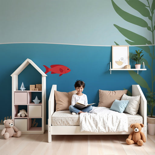 KidsWallPlongez dans un univers apaisant et coloré avec ce papier peint pour bébés inspiré par la beauté des fonds marins. Un adorable poisson rouge nage p...