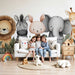 Ce papier peint animaux de la savane présente une adorable collection d'animaux, parfaite pour apporter une touche joviale à la chambre de votre enfant. Avec des illustrations douces d'un lion, d'une zèbre, d'un kangourou, d'un éléphant et d'une girafe, ce papier peint jungle est idéal pour stimuler l'imagination tout en créant un environnement réconfortant.