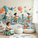 Ce papier peint artistique illustre une joyeuse scène estivale où des enfants font une balade à vélo, portant des ballons de multiples couleurs. Parfait pour créer une ambiance ludique et apaisante dans une chambre d'enfant ou une salle de jeux, ce design unique mélange la liberté de la nature avec l'énergie vivante de l'enfance.