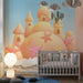 Papier peint chambre bébé | Château de sable et étoiles de mer sur fond pastel