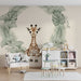 Apportez une touche de douceur et de nature dans la chambre de votre bébé avec ce papier peint pour bébé mettant en scène une adorable girafe. Entourée de feuilles tropicales délicates, cette girafe charmante crée une atmosphère apaisante et accueillante, parfaite pour un espace de sommeil serein.