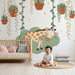 Papier peint chambre bébé | Girafe endormie et plantes suspendues