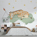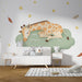 Les teintes douces de beige et de vert, associées aux motifs ludiques, apportent une touche de magie et de rêve à l'espace. Chaque détail, de la girafe paisible aux étoiles lumineuses, est conçu pour stimuler l'imagination de votre petit tout en favorisant un environnement relaxant.