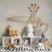 Les nuages pastel et les feuilles tropicales créent une ambiance apaisante, idéale pour les rêves et l'imagination. Chaque détail, de la girafe souriante aux délicates nuances des nuages, est soigneusement illustré pour stimuler la curiosité et l'émerveillement.