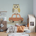 Les couleurs douces et pastel apportent une ambiance apaisante, idéale pour le sommeil et le jeu. Le hibou, avec ses grands yeux ronds et son plumage délicat, devient le compagnon parfait pour les petites aventures nocturnes de votre enfant. La voiture, stylisée et amusante, ajoute une note de dynamisme à la décoration.