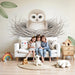 Les teintes douces et naturelles, allant des tons crème aux nuances de vert, favorisent une ambiance apaisante. Chaque détail, du plumage du hibou aux brindilles du nid, est soigneusement illustré pour offrir un rendu harmonieux et accueillant. Ce papier peint invite à la rêverie et à l'imagination, transformant la chambre en un véritable cocon de bien-être.