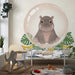 Apportez une touche de douceur et de magie dans la chambre de votre bébé avec ce papier peint pour bébé représentant un adorable hippopotame installé dans une bulle. Entouré de feuilles tropicales et de bananes, ce motif ludique et apaisant crée une atmosphère chaleureuse et accueillante.