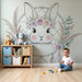Papier peint chambre bébé | Lapin rêveur avec couronne de fleurs