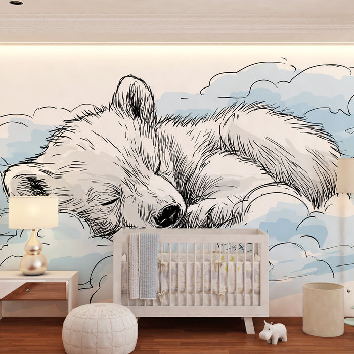 Papier peint chambre bébé | Ours polaire endormi dans les nuages