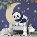 Transformez la chambre de votre bébé en un espace cocooning avec ce papier peint pour bébé charmant. Un adorable panda s'endort paisiblement sur un croissant de lune, entouré d'étoiles scintillantes et de feuilles délicates. Ce décor enchanteur invite à la rêverie et à la douceur des nuits étoilées.