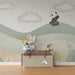 Les nuages délicats flottant dans le ciel ajoutent une touche de légèreté, tandis que la végétation luxuriante en bas apporte une connexion avec la nature. Chaque détail est soigneusement conçu pour stimuler l'imagination de votre petit tout en offrant un décor harmonieux.
