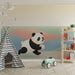 Papier peint chambre bébé | Petit panda joueur sur fond pastel