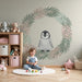 Transformez la chambre de votre bébé en un havre de douceur avec ce papier peint pour bébé mettant en scène un adorable pingouin au centre d'une couronne de feuilles délicates. Ce design apaisant et ludique invite à la tendresse et à la sérénité, parfait pour créer un environnement chaleureux et accueillant.