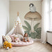 Les teintes délicates et les motifs raffinés apportent une touche de nature tout en restant élégants. Les feuilles de monstera et les palmiers ajoutent une dimension ludique et joyeuse, parfaits pour stimuler la curiosité de votre petit. Chaque détail est soigneusement dessiné pour offrir une atmosphère chaleureuse et accueillante.
