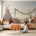 Papier peint chambre bébé | Tipi floral avec guirlande et pampas