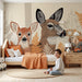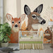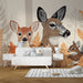 Les détails délicats des animaux, accompagnés d'un petit écureuil espiègle, ajoutent une touche de vie et de curiosité à la décoration. Les motifs de fougères, soigneusement dessinés, apportent une sensation de profondeur et de sérénité, transformant la pièce en un véritable sanctuaire forestier.