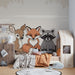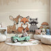 Papier peint chambre enfant | Animaux de la forêt avec un faon, un renard et un raton laveur