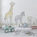 Les illustrations délicates et les teintes pastel créent une ambiance apaisante et ludique, parfaite pour un espace de jeu et de repos. Chaque détail, des taches de la girafe aux rayures du zèbre, est soigneusement conçu pour offrir un rendu joyeux et engageant.
