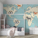 Papier peint chambre enfant | Carte du monde dessinée avec animaux