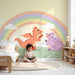 Papier peint chambre enfant | Dragons joyeux sous un arc-en-ciel pastel