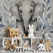 Papier peint chambre enfant | Éléphant mignon entouré de feuillage