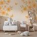 Papier peint chambre enfant | Fleurs dorées et papillons