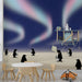 Papier peint chambre enfant | Groupe de pingouins sous les aurores boréales