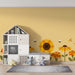 Transformez la chambre de votre enfant en un véritable jardin lumineux avec ce papier peint pour enfants qui met en valeur des tournesols éclatants et des insectes joyeux. Sur un fond jaune doux, des fleurs de différentes tailles, y compris des marguerites et des roses, s'épanouissent, évoquant la beauté de la nature en plein été.