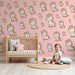 Papier peint chambre enfant | Licornes adorables sur fond rose
