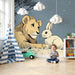 Papier peint chambre enfant | Lion et lapin sous un ciel étoilé