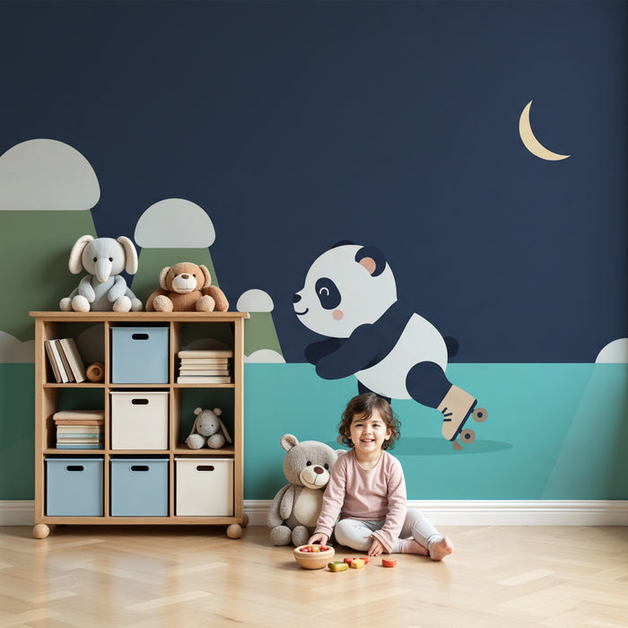 Transformez la chambre de votre enfant en un univers féerique avec ce papier peint pour enfants représentant un adorable panda en train de patiner. Dans un cadre nocturne apaisant, ce panda joyeux glisse avec grâce, prêt à vivre de nouvelles aventures sur la glace.
