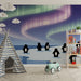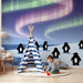 Papier peint chambre enfant | Pingouins sous les aurores boréales