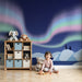 Papier peint chambre enfant | Réunions de pingouins sous les aurores boréales