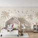 Transformez la chambre de votre enfant en un véritable sanctuaire sauvage avec ce papier peint pour enfants inspiré des paysages africains. Dans une ambiance apaisante, des girafes majestueuses et des zèbres se fondent harmonieusement dans une végétation luxuriante, entourés de palmiers et de plantes tropicales.