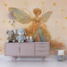 Découvrez notre papier peint fée florale, une illustration enchantée qui ajoute une touche de magie et de charme à n'importe quel espace. La fée, vêtue d'une robe de fleurs délicates et arborant de magnifiques ailes, est entourée d'une constellation d'étoiles dorées, créant une ambiance féerique.