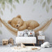 Papier peint ourson | Petit ours endormi dans un hamac feuillu