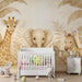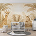 Invitez l'aventure dans la chambre de votre enfant avec notre papier peint Safari illustrant de charmants animaux de la jungle. Ce design enchanteur met en vedette une girafe, un éléphant et un zèbre, entourés de feuillage tropical délicatement dessiné.