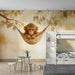 Ce papier peint singe mignon présente une illustration adorable d'un petit singe accroché dans un hamac entouré de feuilles délicates. Parfait pour une chambre d'enfant ou une salle de jeux, ce papier peint apporte une touche de douceur et d'amusement à votre espace. Les tons chauds et doux créent une ambiance accueillante et réconfortante.