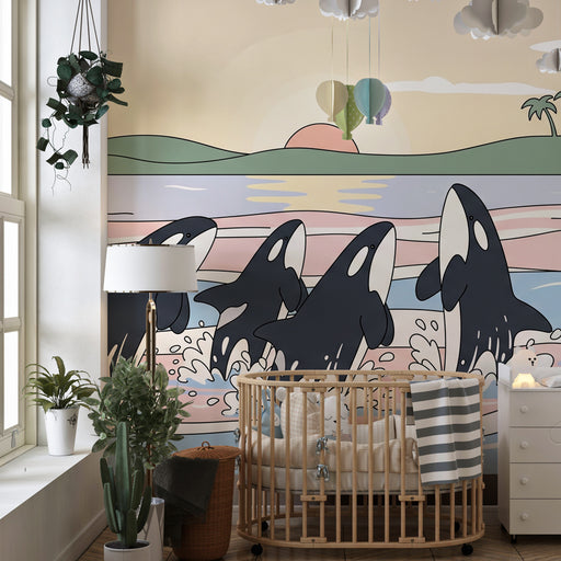 KidsWallTransformez la chambre de votre enfant en un véritable paysage marin avec ce papier peint pour enfants représentant des orques sautant joyeusement ...