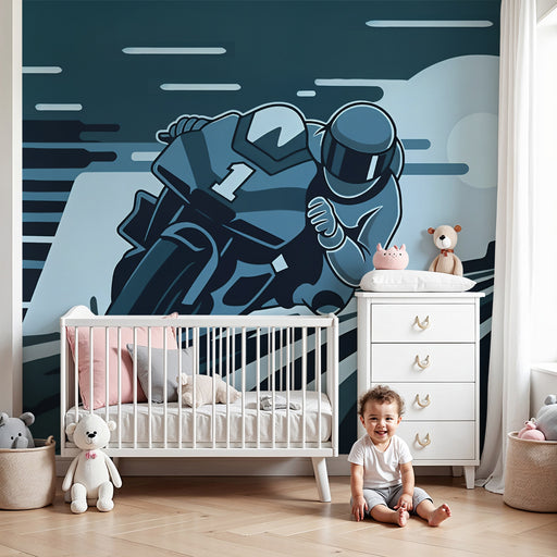 KidsWallDécouvrez notre papier peint course de moto futuriste, parfait pour dynamiser la chambre de votre enfant. Ce design audacieux, qui capture la vites...
