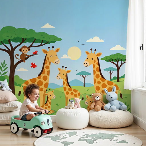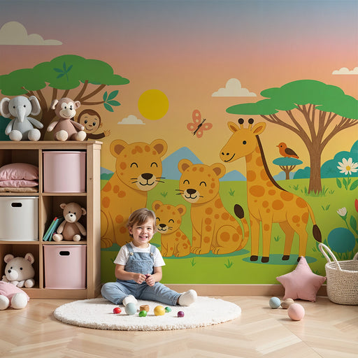 KidsWallApportez la magie de la savane dans la chambre de votre enfant avec notre papier peint animaux sauvages. Ce design amusant et coloré présente une j...