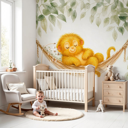 KidsWallApportez une touche de douceur à la chambre de votre enfant avec notre papier peint bébé singe en hamac. Ce design délicat présente un adorable sin...