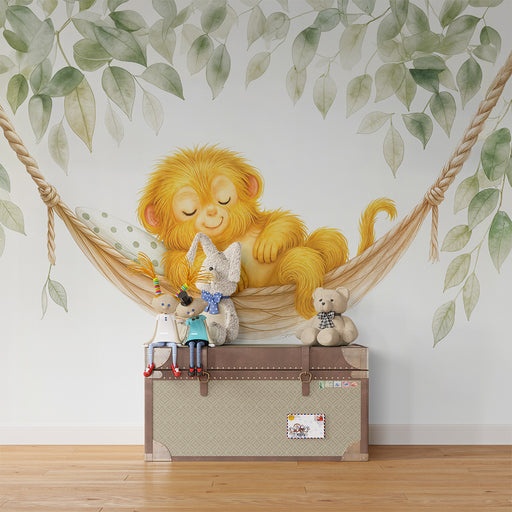 Afficher tous les détailsPapier peint chambre bébé | Singe endormi dans un hamac