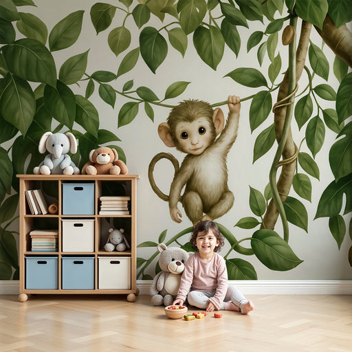 KidsWallTransformez la chambre de votre enfant en un véritable espace d'aventure avec ce papier peint chambré pour enfants, mettant en scène un petit singe...