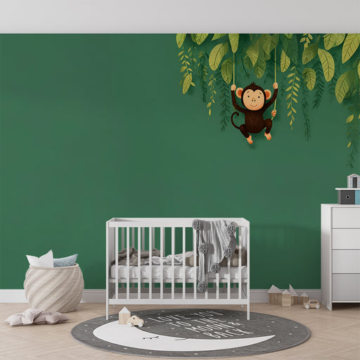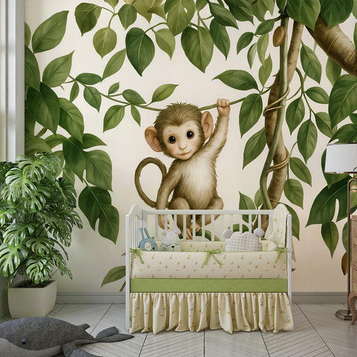 KidsWallApportez une touche ludique et douce à la chambre de votre bébé avec ce papier peint pour bébé illustrant un adorable petit singe qui se balance jo...