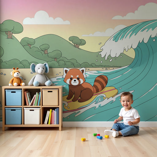 Afficher tous les détailsPapier peint chambre enfant | Panda roux sur sa planche de surf