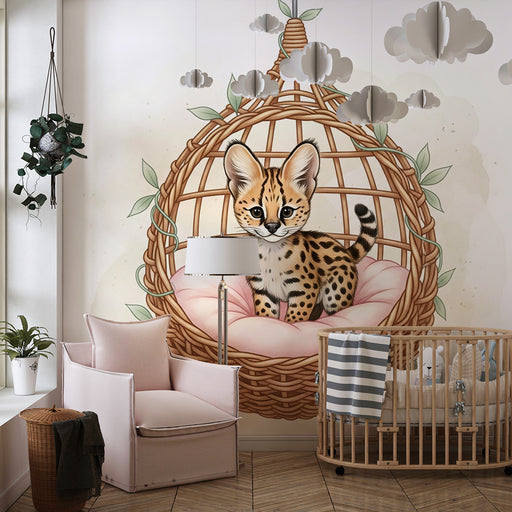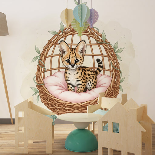Afficher tous les détailsPapier peint chambre enfant | Petit chaton dans un panier suspendu