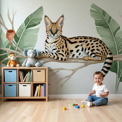 KidsWallTransformez la chambre de votre enfant en un véritable havre de paix avec ce papier peint pour enfants illustrant un serval élégant reposant sur un...
