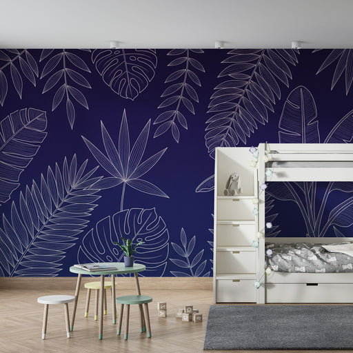 KidsWallTransformez la chambre de votre enfant en un havre de sérénité avec ce papier peint pour enfants aux motifs de feuilles tropicales délicatement tra...