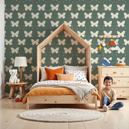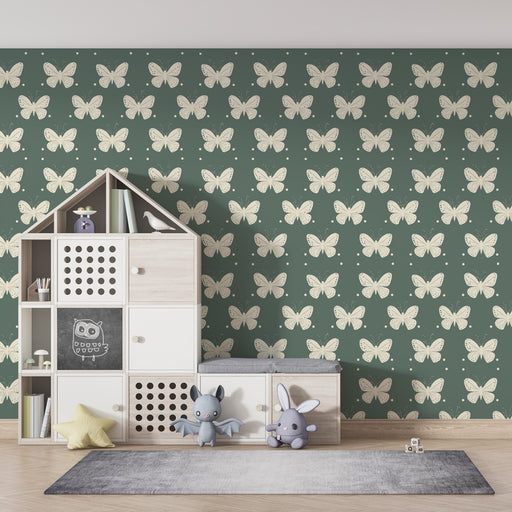 Afficher tous les détailsPapier peint chambre enfant à motifs | Papillons délicats sur fond vert